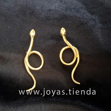 Pendientes de latón bañado en oro de 14k con forma de serpiente.