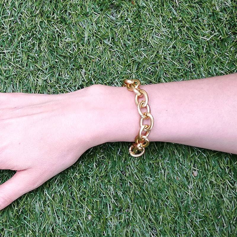 Pulsera de eslabones hecha en acero chapado de la marca Moments. Largo de 21cm. Color dorado.