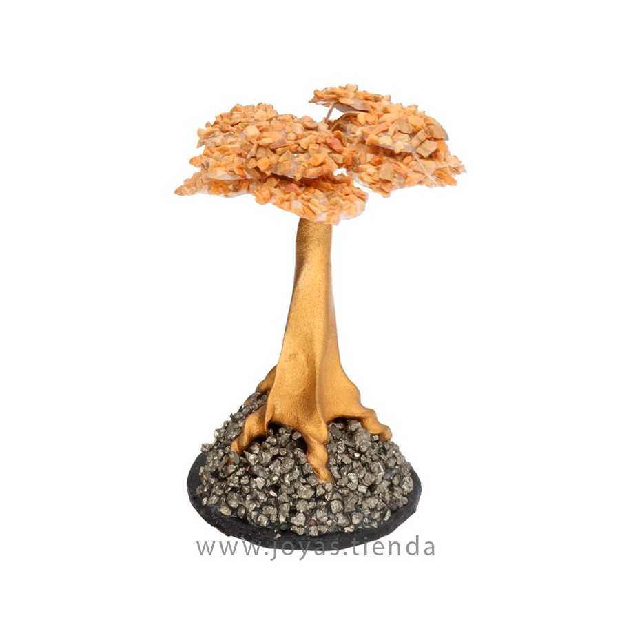 Árbol Mini Jaspe Amarillo con Base de Pirita. Arbolito de piedras naturales, en la copa Jaspe Amarillo, en la parte inferior Pirita. Procedente de Perú.