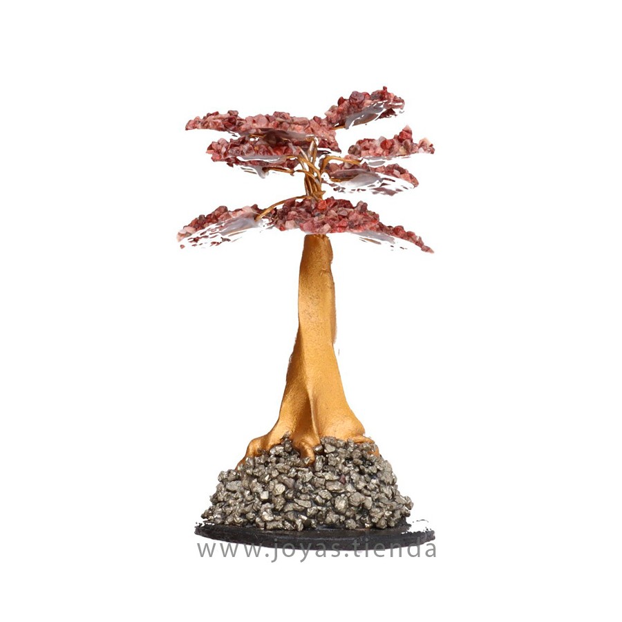 Árbol Mini Jaspe Rojo con Base de Pirita. Arbolito de piedras naturales, en la copa Jaspe Rojo, en la parte inferior Pirita. Procedente de Perú.