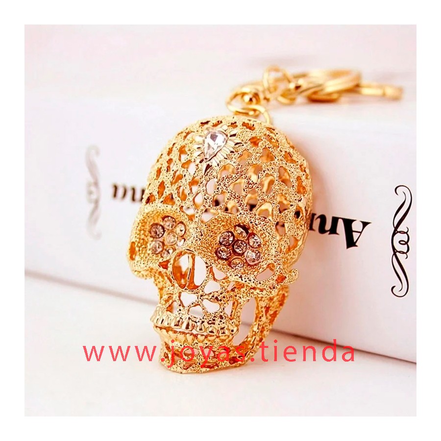 Llavero Calavera Dorada Circonitas. Disponible en otros colores.