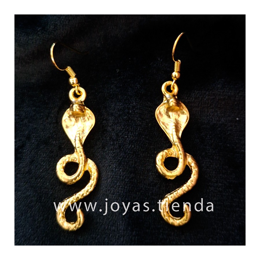 Pendientes Serpiente Cascabel Dorada Dibujo en latón bañada en oro de 14 quilates.