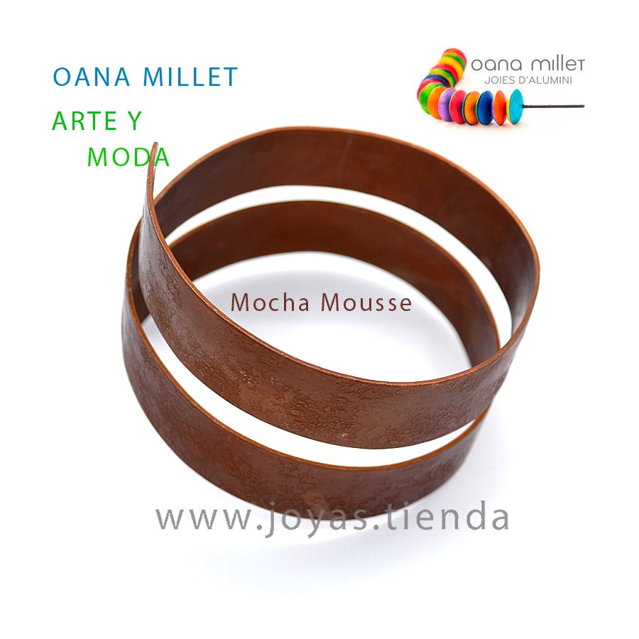 Pulsera Ancha Arco Marrón diseñada por Oana Millet. Pulsera artesanal hecha de aluminio de color marrón. Pulsera de diseño, pulsera de moda de la mano de Oana Millet. Anchura 5 cm aproximadamente, diámetro 6 cm. Ajustable.