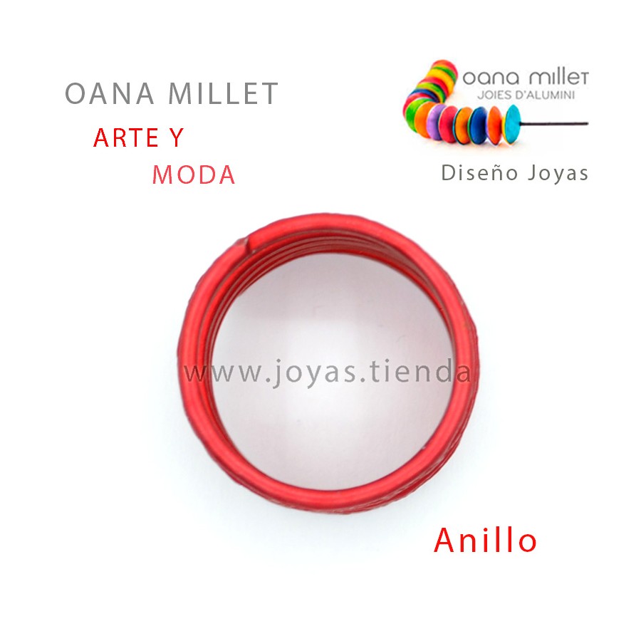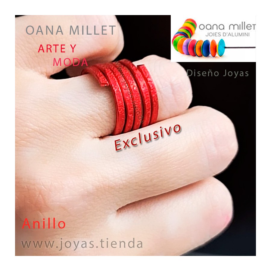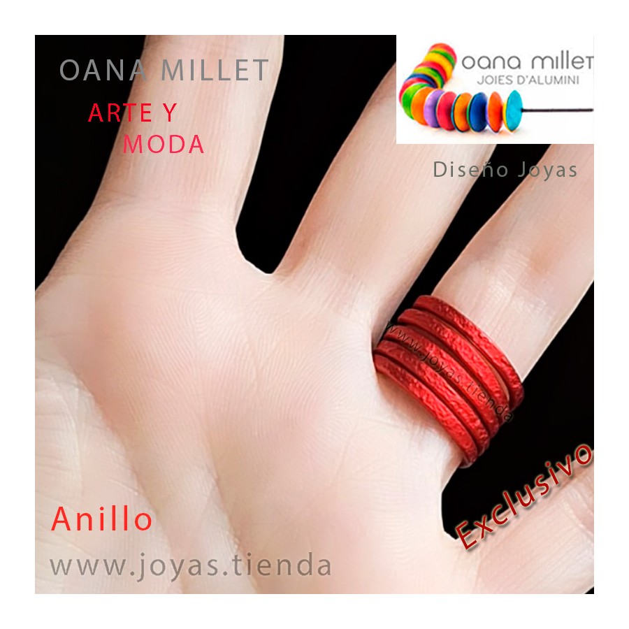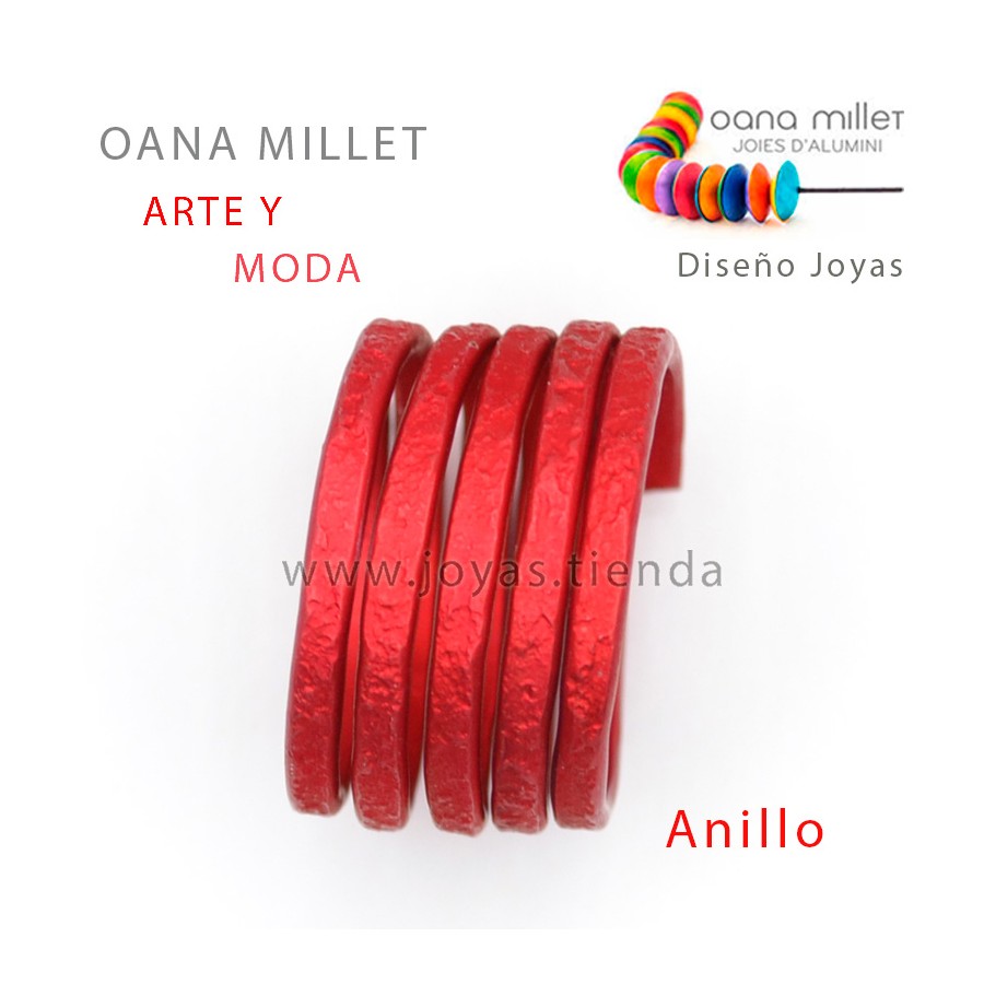 Anillo Vida Rojo. Anillo hecho en aluminio en el color de la temporada de Rojo. La base del anillo está realizada en aluminio con una técnica cromática específica que le otorga ese color tan particular que sólo consigue Oana Millet.