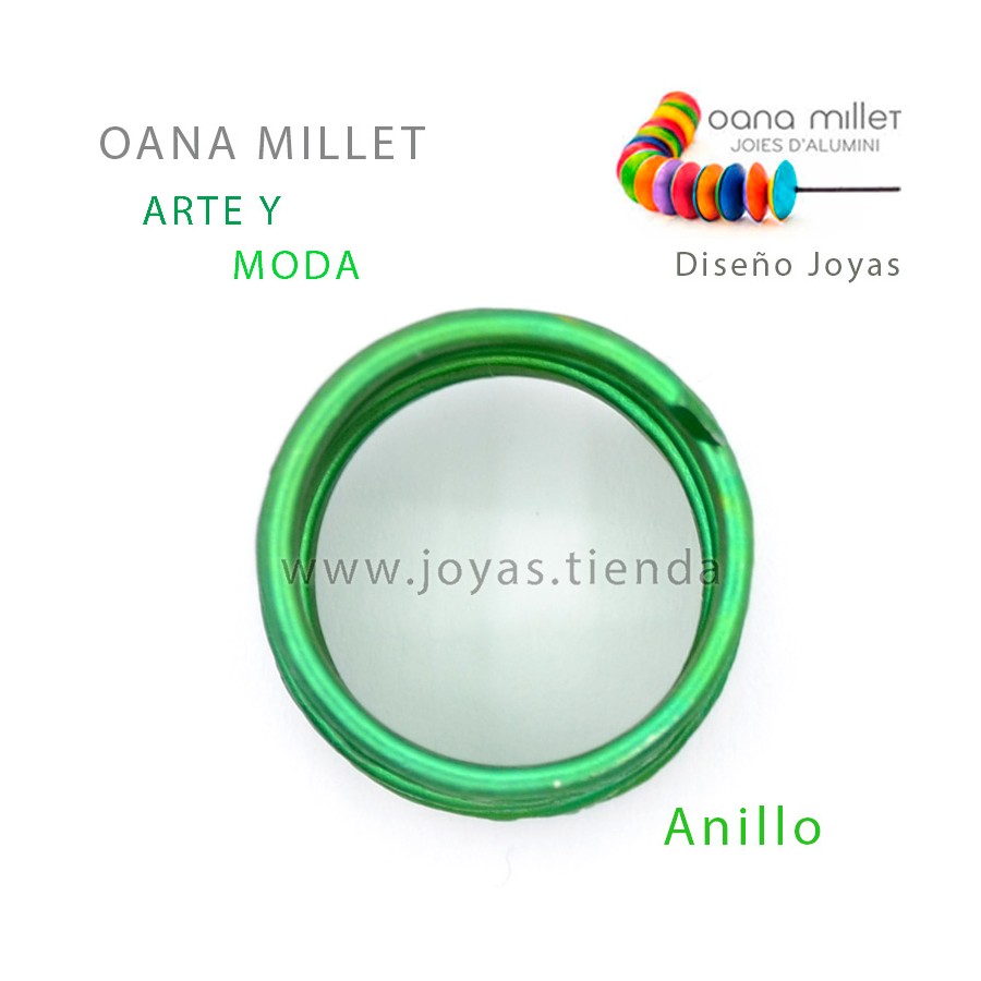 Anillo Vida Verde. Anillo hecho en aluminio en el color esmeralda de la temporada de moda. La base del anillo está realizada en aluminio con una técnica cromática específica que le otorga ese color tan particular que sólo consigue Oana Millet.