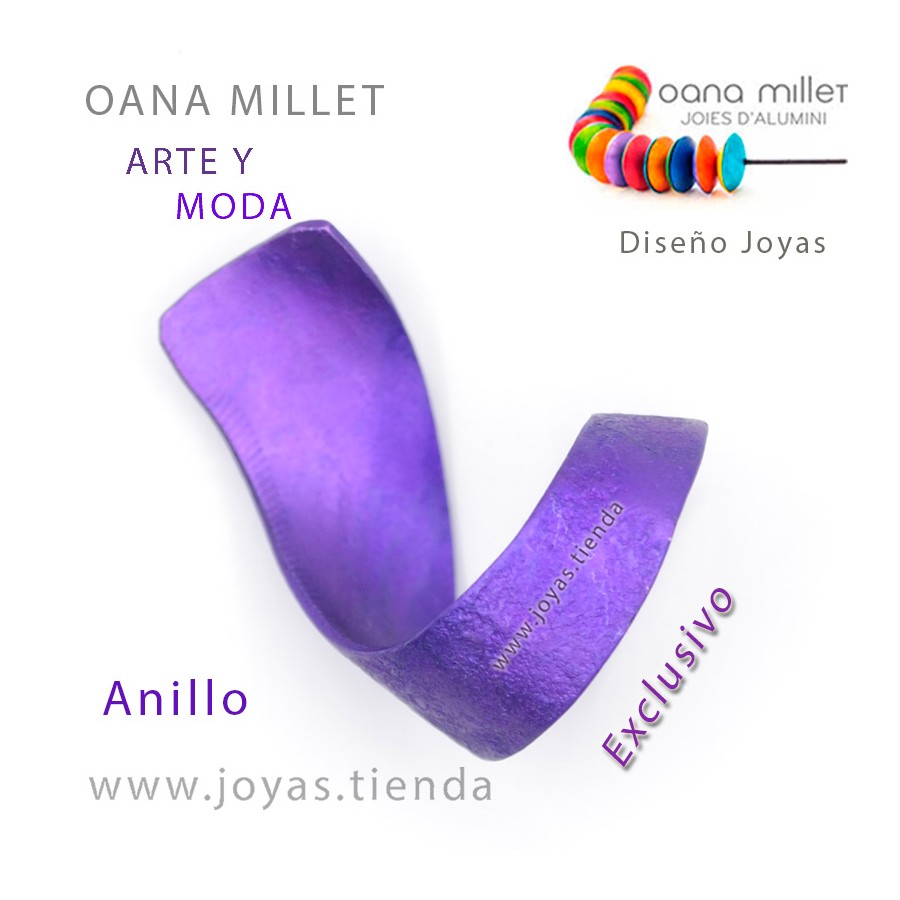 Anillo Evo Morado. Anillo hecho en aluminio en el color de la temporada de moda. La base del anillo está realizada en aluminio con una técnica cromática específica que le otorga ese color tan particular que sólo consigue Oana Millet.