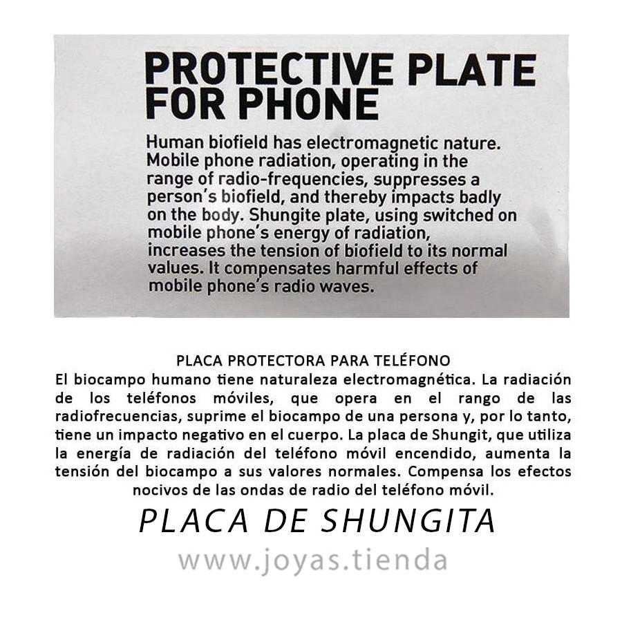 Placa Rectangular Adhesiva de Shungit. Placa para poner en el teléfono móvil.