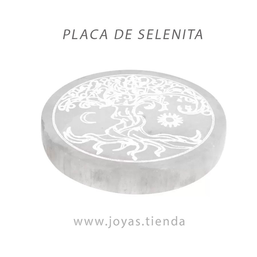 Placa Circular de Selenita Sol y Luna Árbol de la Vida