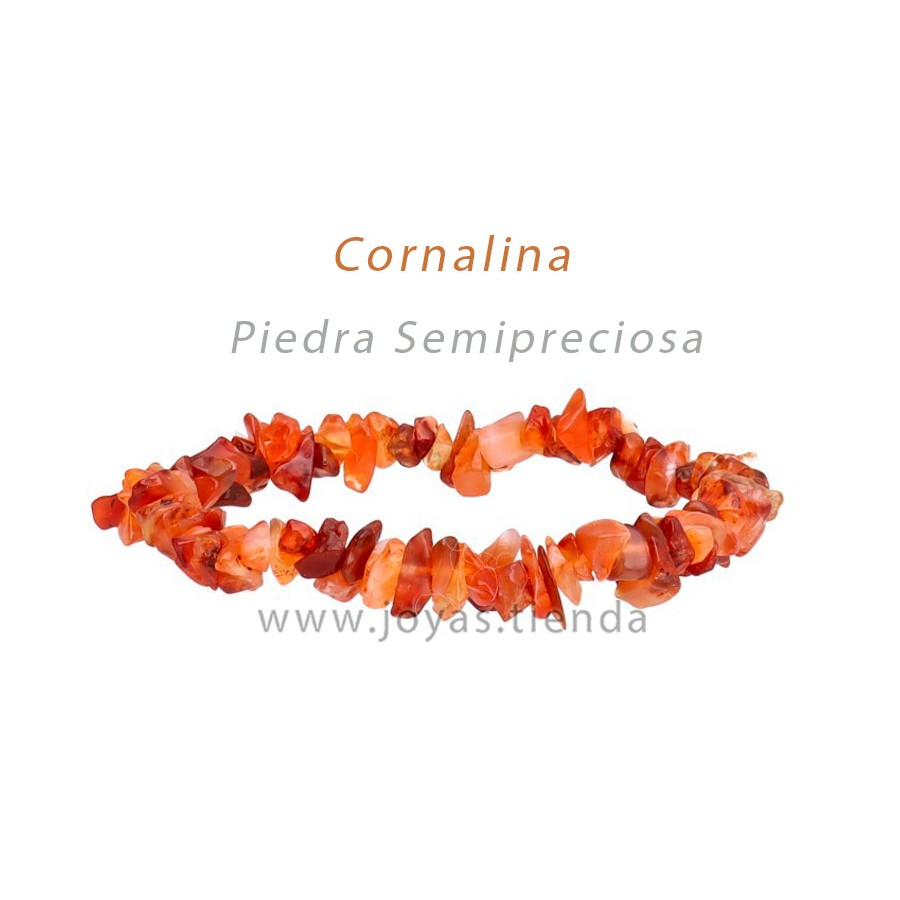 La cornalina ayuda a equilibrar el 1º y 2º chakra, aportando vitalidad y fortaleza. Favorece la superación de los miedos, las inseguridades y el desánimo. Facilita la capacidad para relacionarse y ayuda a regular las emociones. A nivel curativo se dice que la cornalina refuerza y sana los órganos sexuales y reproductores, y suele usarse junto con un granate para activar la energía sexual.
