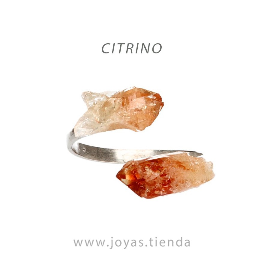 Anillo de Plata con Citrino en Bruto. Las piezas que se entregarán son similares a las de las fotografías, son anillos con piedras naturales en bruto, sin pulir, cada piedra es exclusiva y tiene sus vértices.