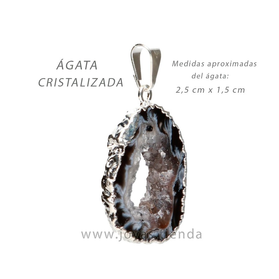 Colgante Ágata Cristalizada, piedra natural con engarce baño de plata. Procedente de Brasil.