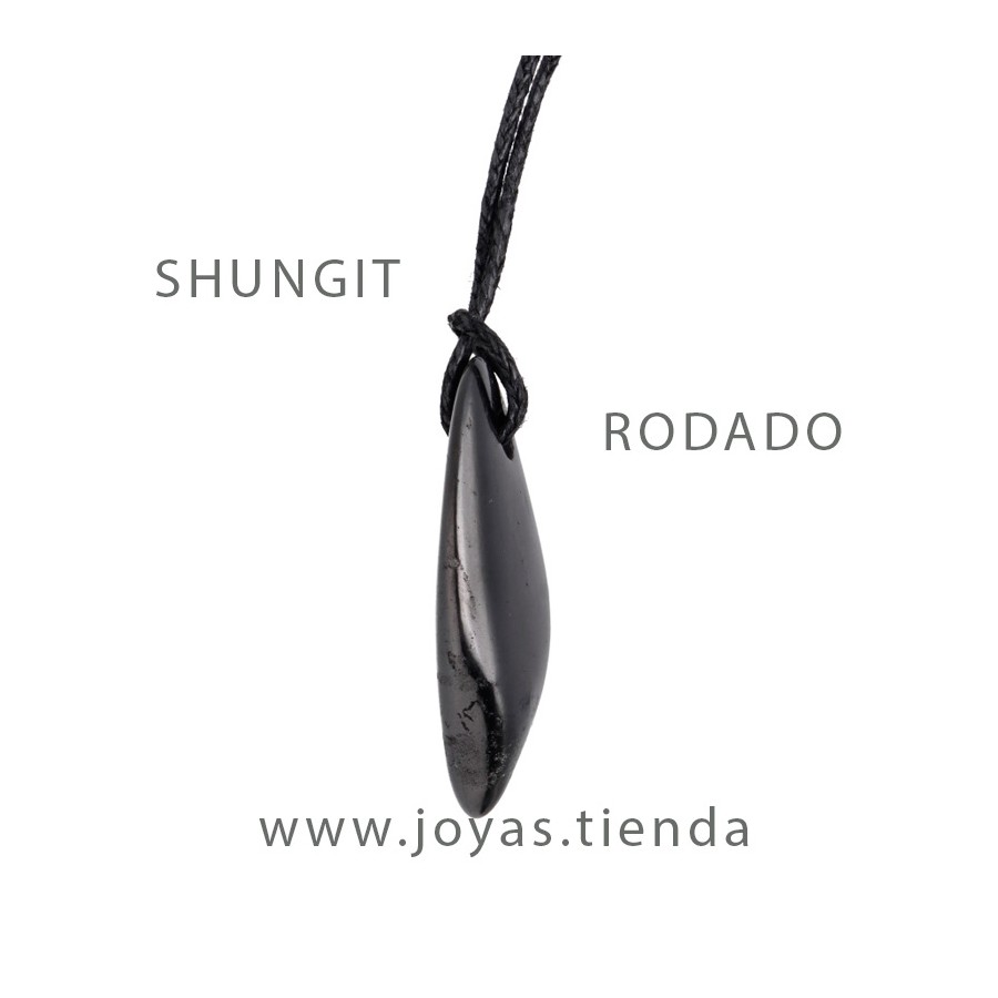 Colgante Shungit Rodado, piedra natural famosa por sus múltiples propiedades procedente de Shunga, Karelia, Rusia.