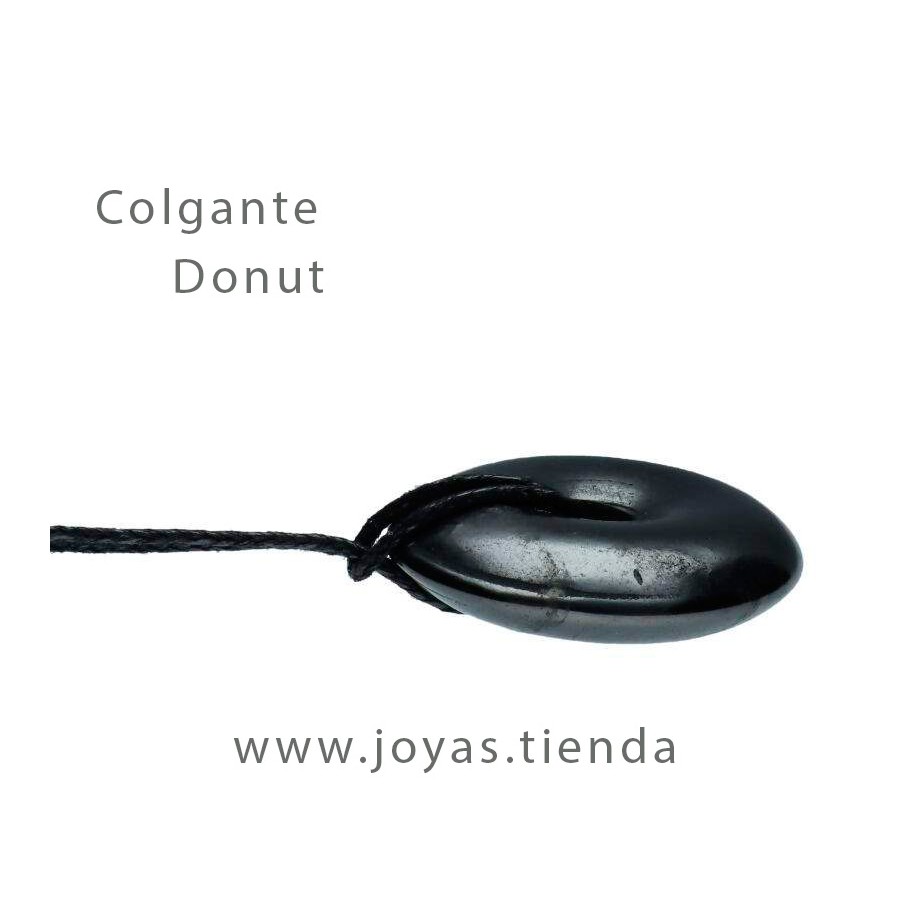 Colgante Donut Shungit, piedra natural famosa por sus múltiples propiedades procedente de Shunga, Karelia, Rusia.