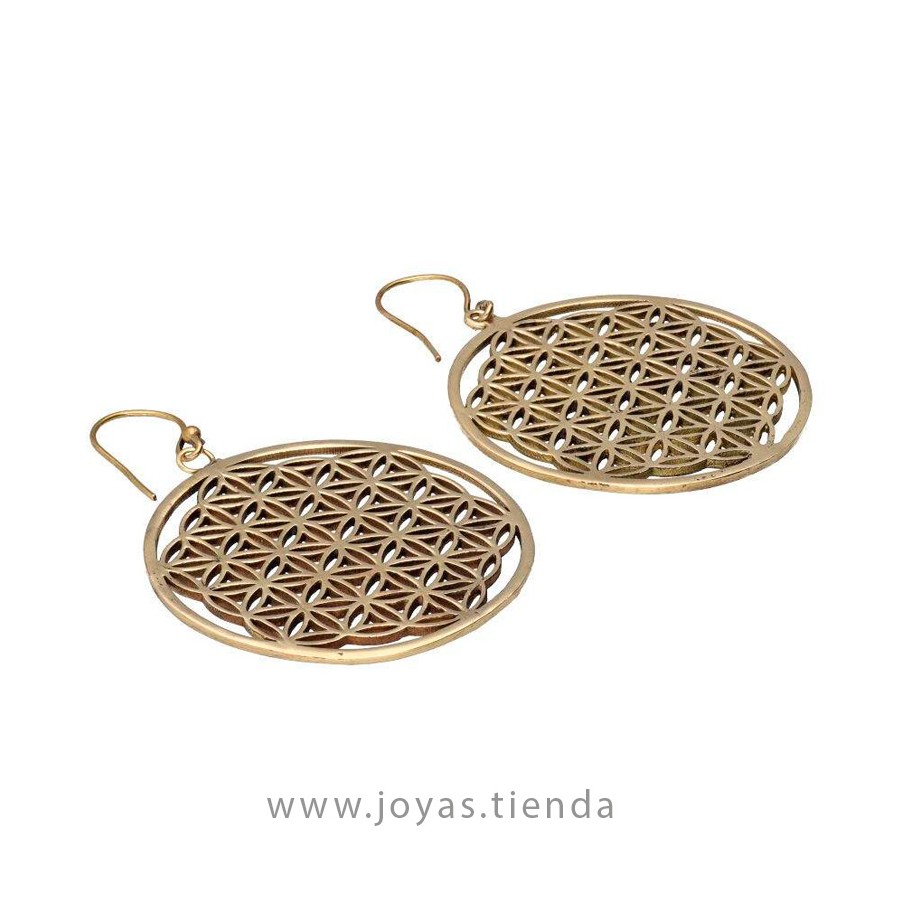 Pendientes Flor de la Vida Grandes. Pendientes de Bronce. Procedente de India.