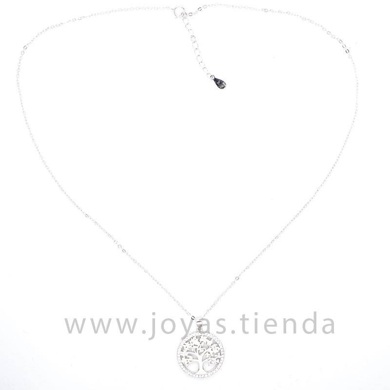 Colgante con cadena hecho en plata de ley 925 árbol de la vida. Adornos con circonitas rodeando al árbol.