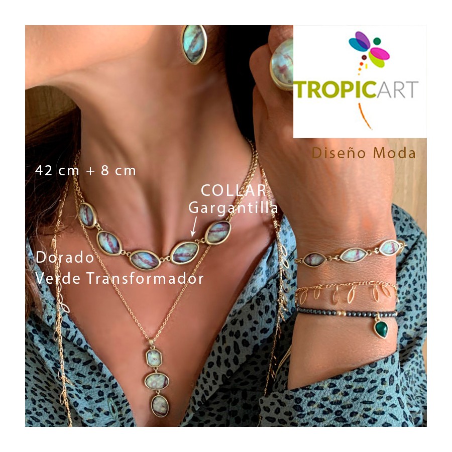 Moda y Diseño de la mano de Tropic Art, Barcelona. Bisutería fantasía compuesta de metal sin níquel, sin cadmio, sin plomo. Fabricado en P.R.C.