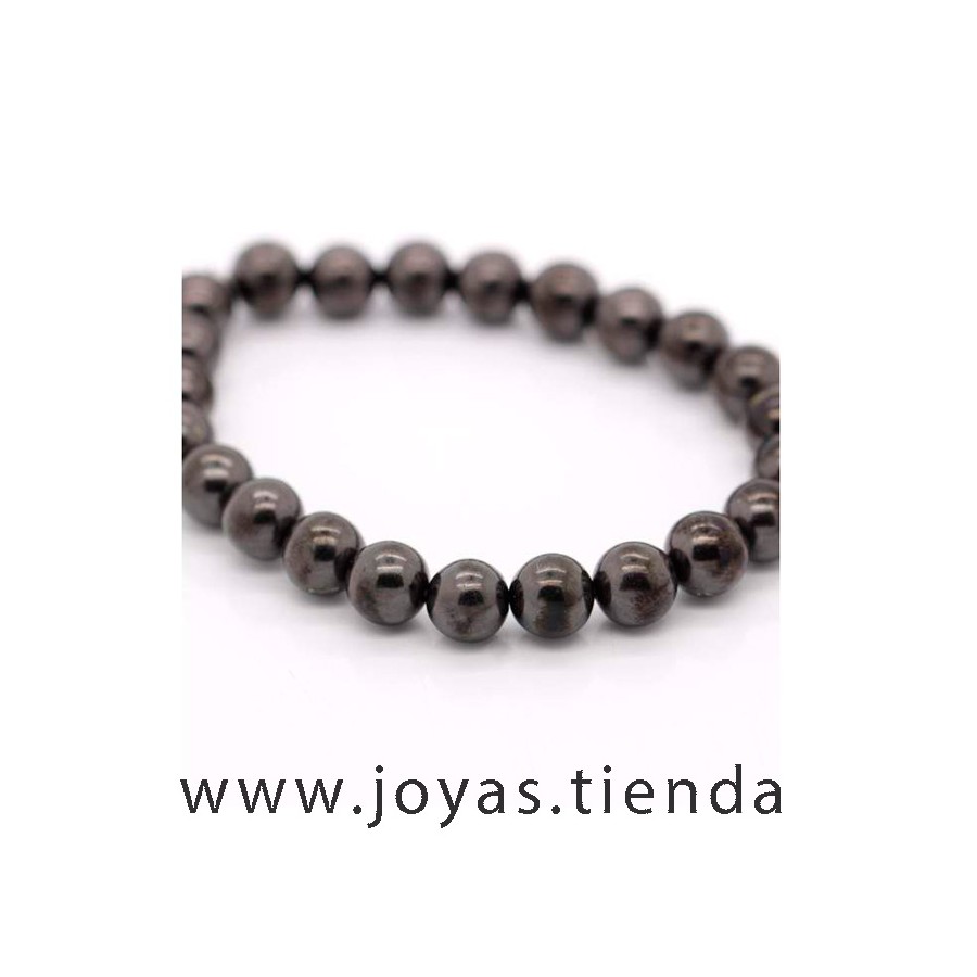 Pulsera Shungita Bola 8 mm. Pulsera de piedra natural Shungita, de 8 milímetros. De color negro, pulsera de piedra natural Shungita. Nota a tener en cuenta: La Shungita mancha durante los primeros días de su uso, es una piedra natural que tarda unos días en liberar las partículas adheridas producto de su manipulación. Te recomiendo no ponerla con colores claros en los primeros días, o, en su caso, ponerla con cuidado de no rozarte con ella. Recuerda que es una piedra natural en estado puro, puedes lavarla o ducharte con ella para que se vaya limpiando más rápido. Una vez se ha limpiado su color pasa de ser ligeramente satinado a ser mate.